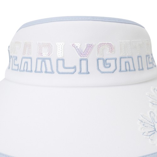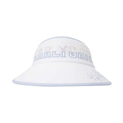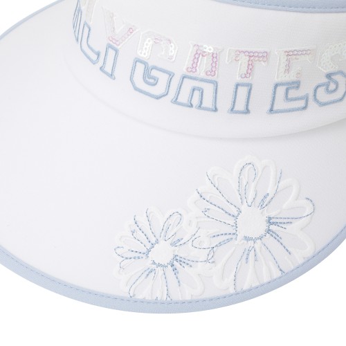 여성 플로럴 스팽글 로고 와이드 썬바이저