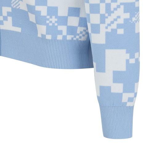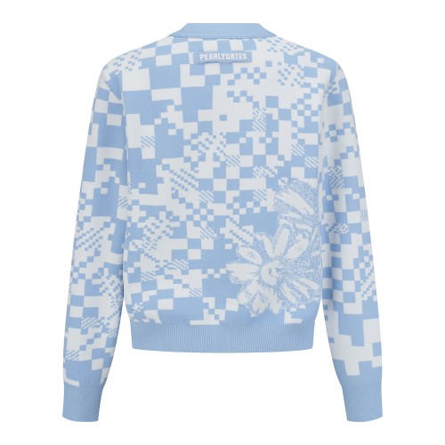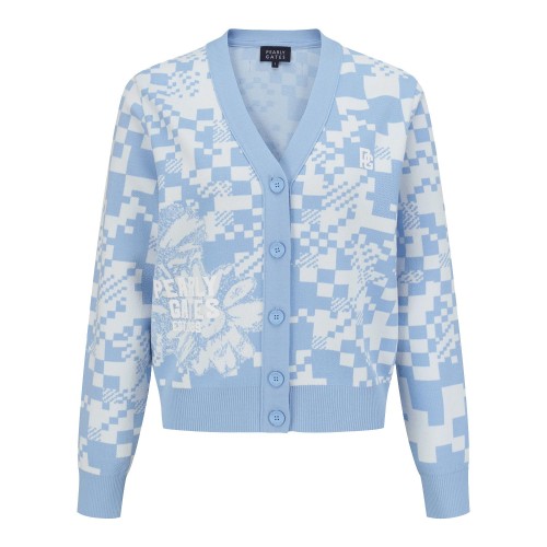 여성 체커보드 플로럴 자카드 크롭 가디건