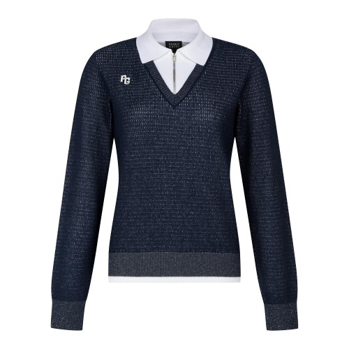 [ONLY BUCKET] 여성 하프 집업 배색 카라 긴팔 니트+0원