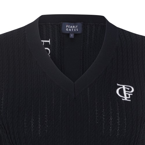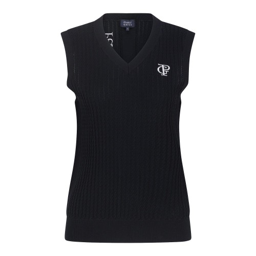 여성 로고 자수 케이블 니트 베스트