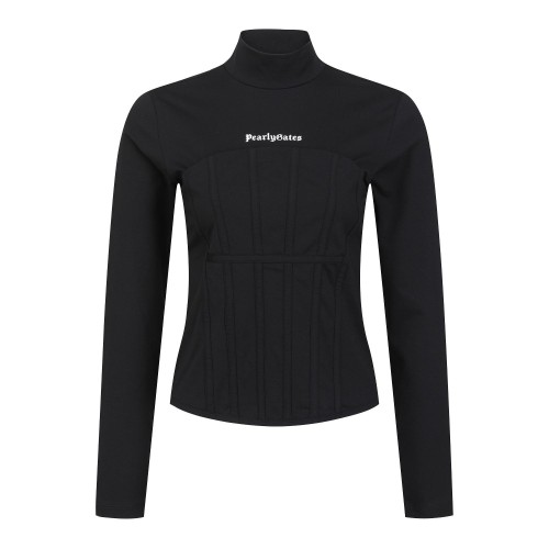 여성 솔리드 뷔스티에 절개 긴팔 티셔츠