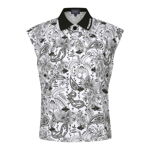 여성 페이즐리 플로럴 카라 캡 슬리브 티셔츠+0원