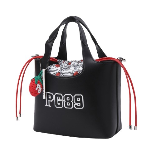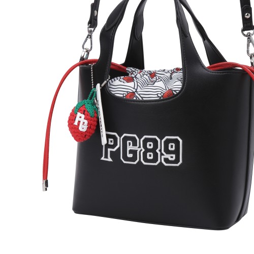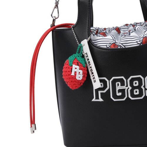 여성 엠보 자수 로고 패턴 키링 버킷백