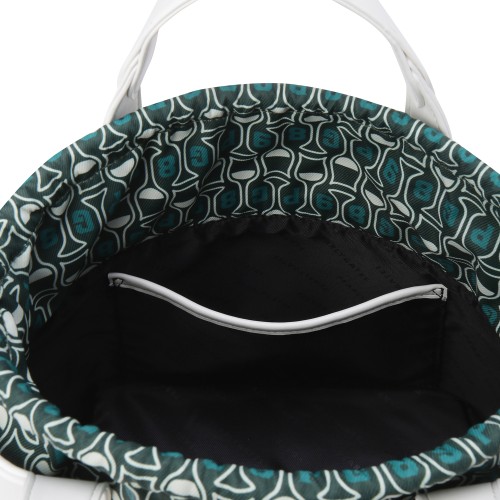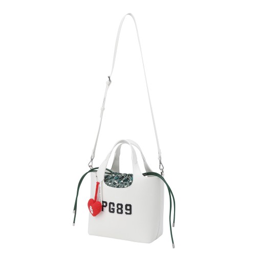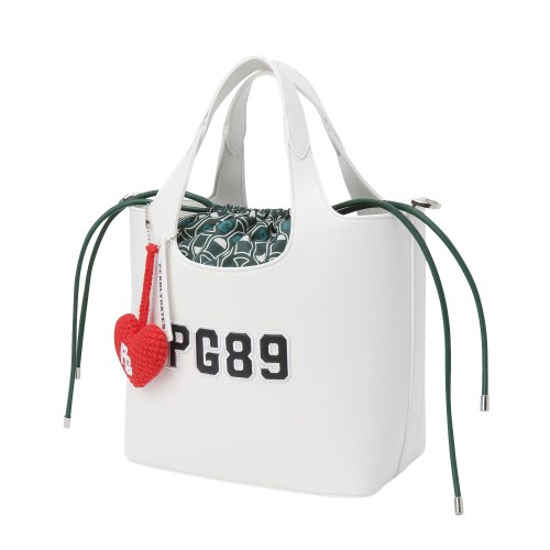 여성 엠보 자수 로고 패턴 키링 버킷백