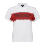 여성 로고 컬러 블록 칼라 반팔 니트