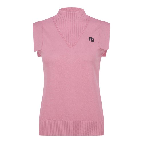 [박현경프로 착용]여성 골조직 믹스 패널 니트 베스트+0원