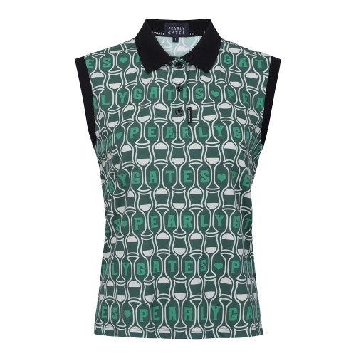 [냉감]여성 로고 패턴 칼라 슬리브리스 탑