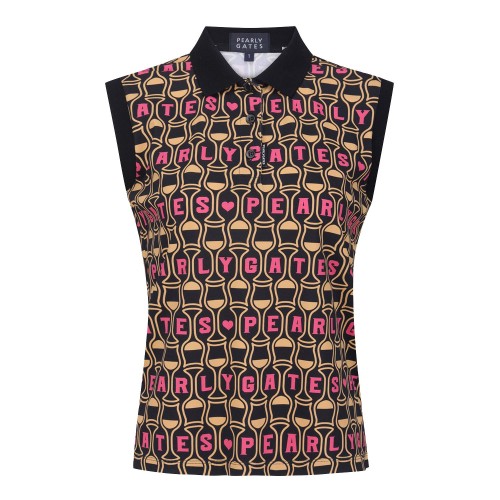 [냉감]여성 로고 패턴 칼라 슬리브리스 탑
