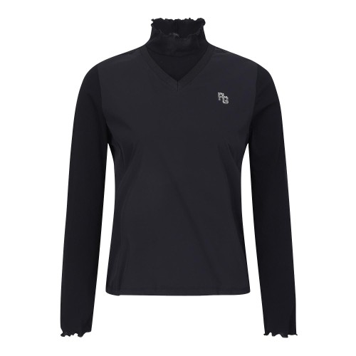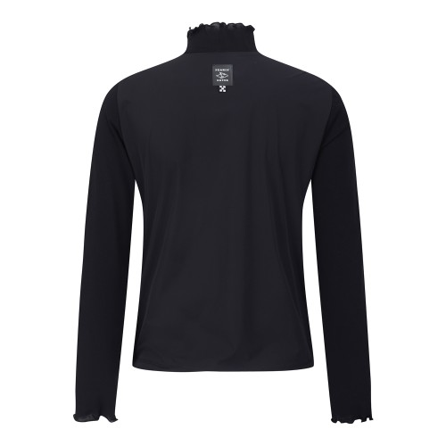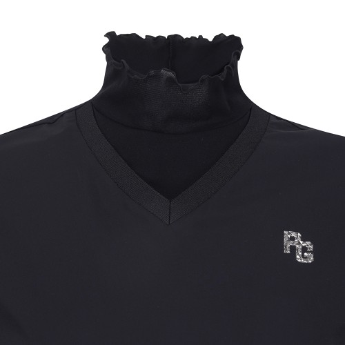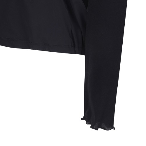 [냉감]여성 프릴 하프넥 레이어드 우븐 믹스 티셔츠