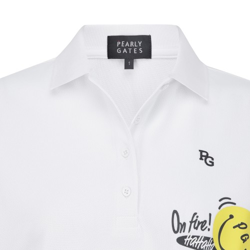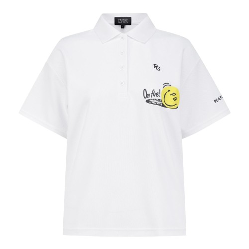 여성 스마일 레터링 칼라 반팔 티셔츠