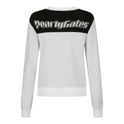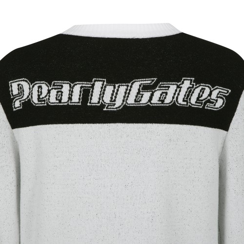 여성 스트라이프 믹스 로고 반팔 니트