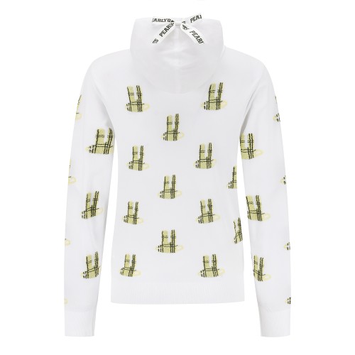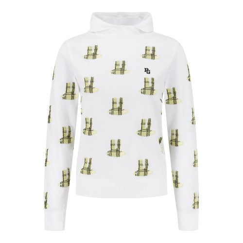 여성 바니 자카드 리본 후드 니트