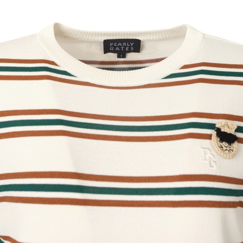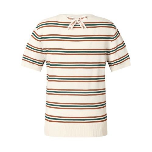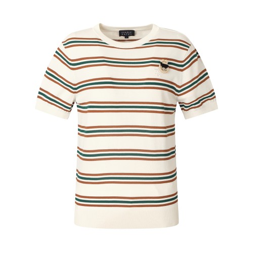 여성 바니 브로치 스트라이프 반팔 니트