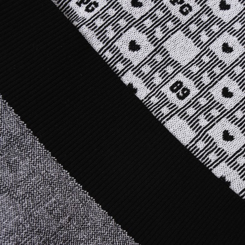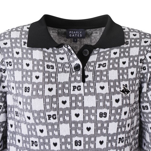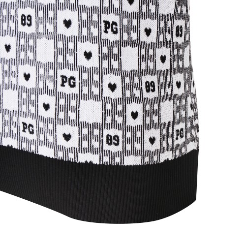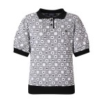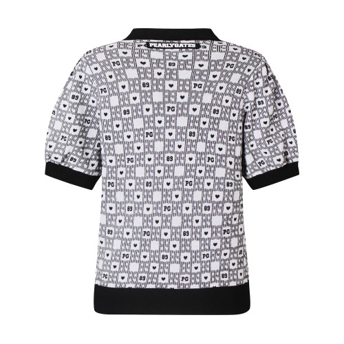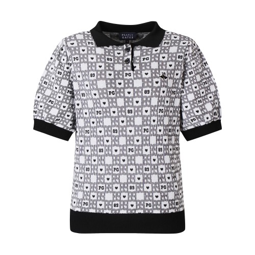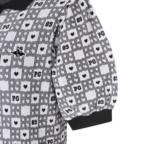 여성 체크 패턴 퍼프 반팔 니트