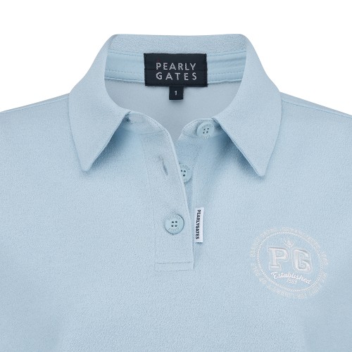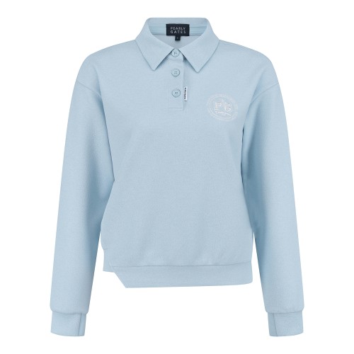 여성 라운드 엠블럼 자수 스웻 폴로 티셔츠