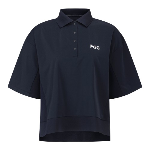 여성 PGG 로고 프린팅 니트 블록 티셔츠