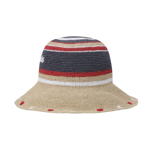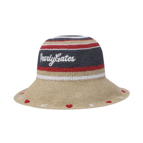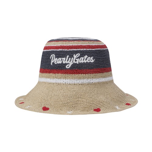 여성 스트라이프 로고 라피아 햇