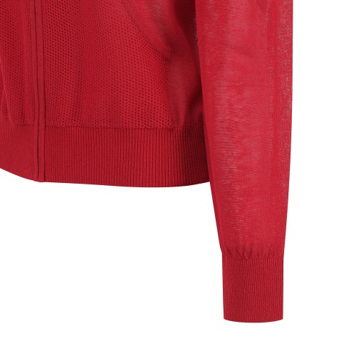 여성 배색 라인 오픈 칼라 메쉬 집업 가디건