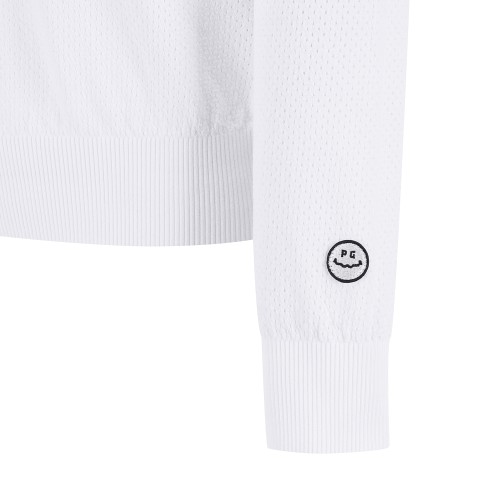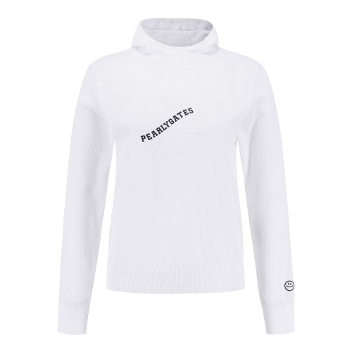 여성 스마일 패치 로고 메쉬 후드 니트