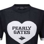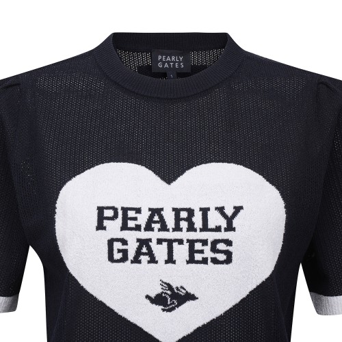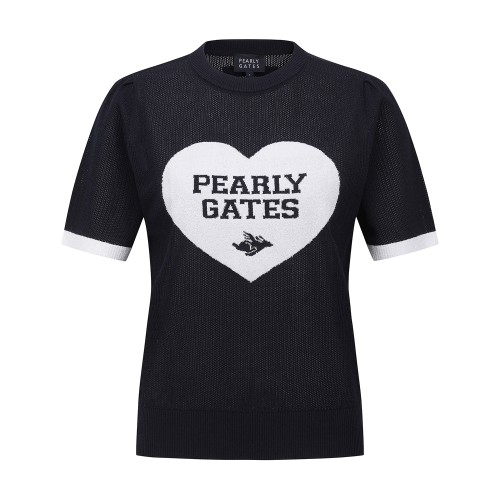 여성 배색 하트 자카드 크로셰 반팔니트