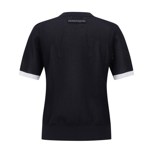 여성 메쉬 블록 로고 반팔 니트