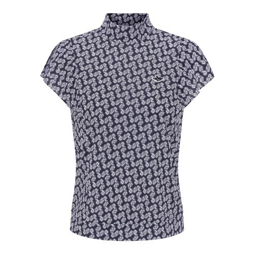 여성 모노그램 패턴 모크넥 패널 티셔츠