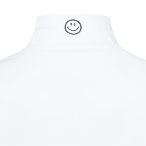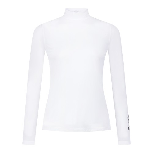 여성 스마일 로고 모크넥 시스루 티셔츠
