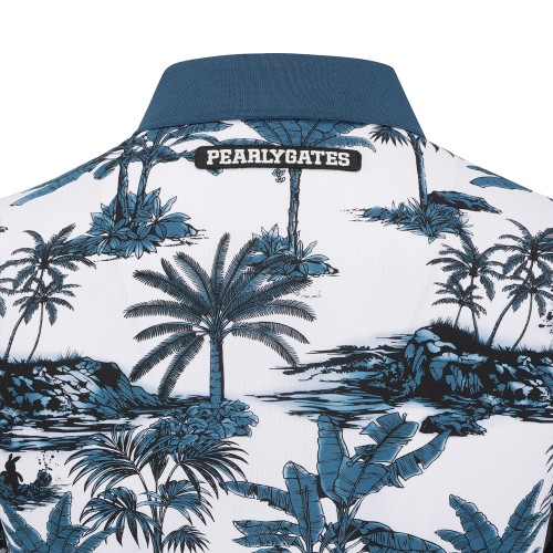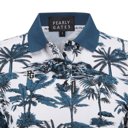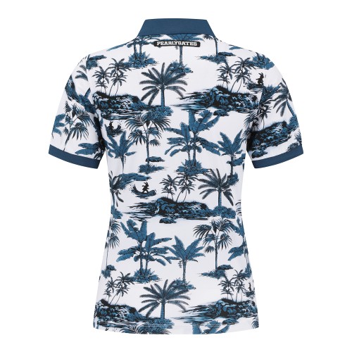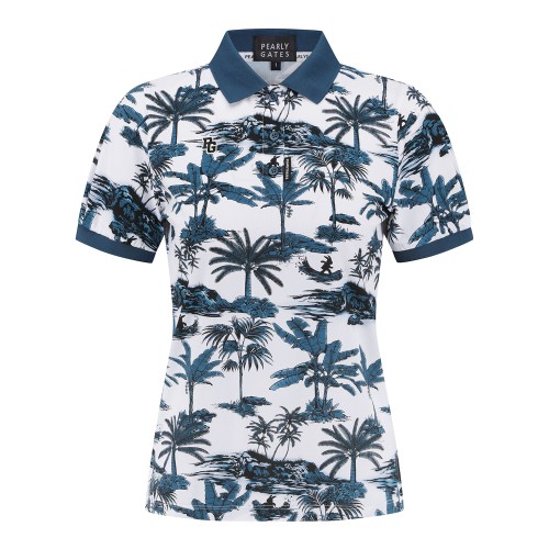 여성 야자수 프린팅 칼라 반팔 티셔츠