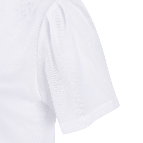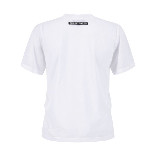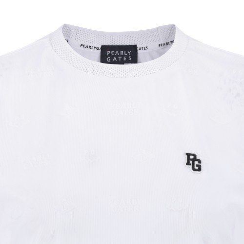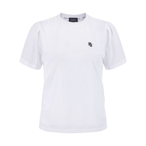 여성 스마일 로고 시스루 셔링 반팔 티셔츠