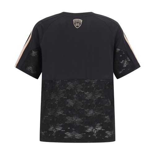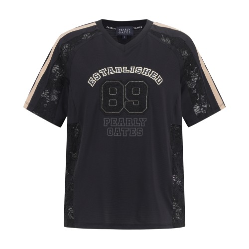 여성 플로럴 레이스 블록 반팔 티셔츠