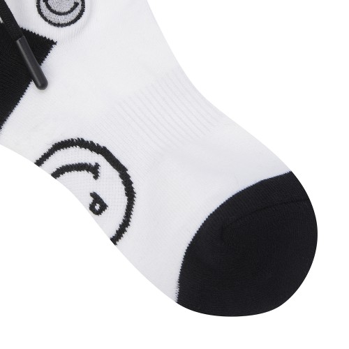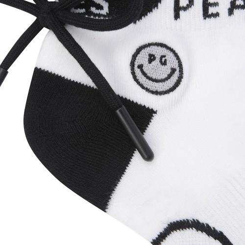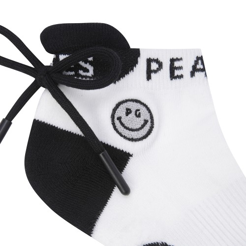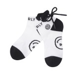 여성 탈착 폼폼 배색 로고 중목 양말