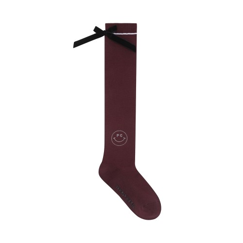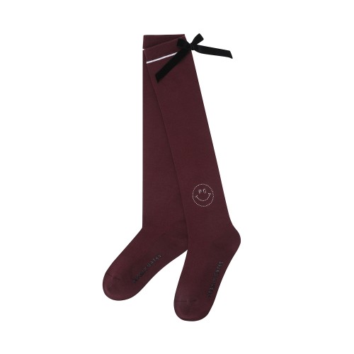 여성 스마일 벨벳 리본 골지 니삭스