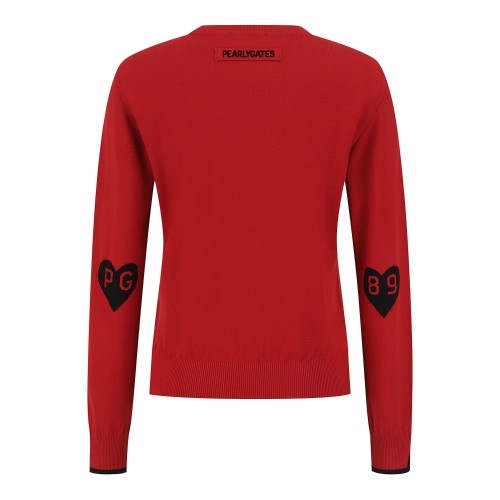 여성 배색 하트 자카드 긴팔 니트