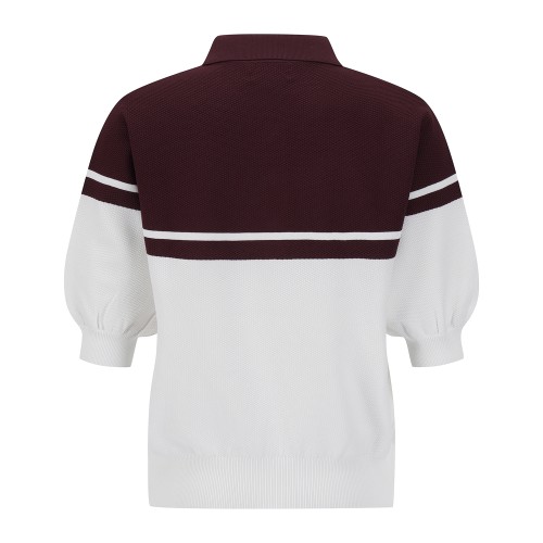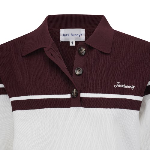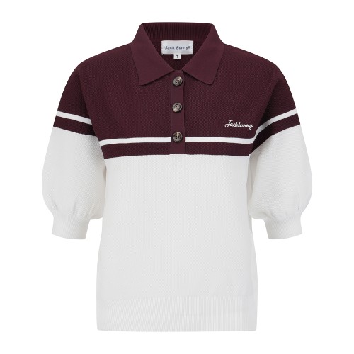 여성 잭바니 투톤 배색 와플 조직 니트
