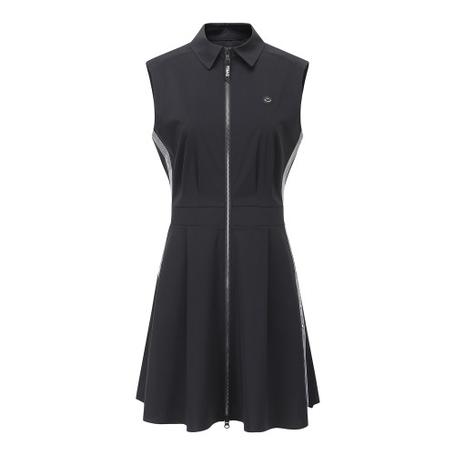 여성 백 플리츠 슬리브리스 집업 원피스