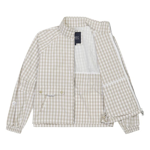여성 스마일 인버티드 플리츠 백 후드 점퍼
