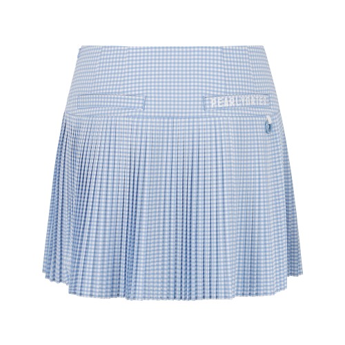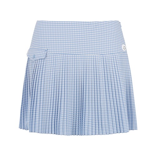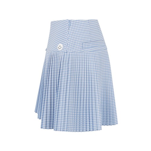 여성 스마일 패치 체크 플리츠 큐롯스커트