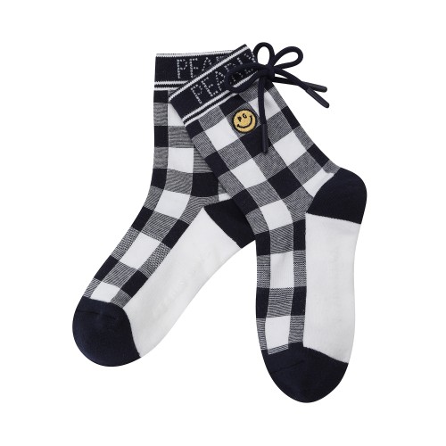 여성 슈레이스 리본 논슬립 중목 양말