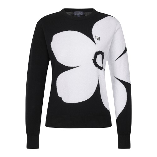 여성 빅 플라워 인타르시아 긴팔니트