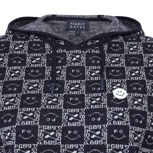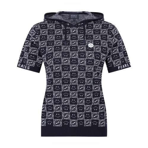 여성 스마일 블록 패턴 후드 반팔니트