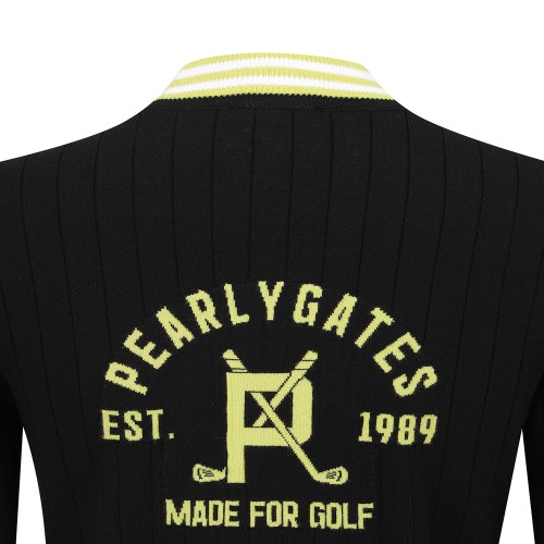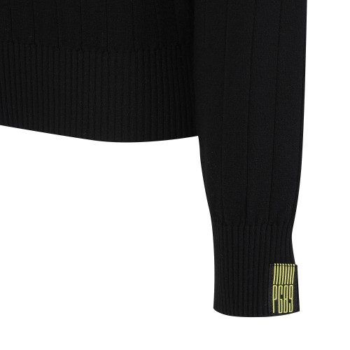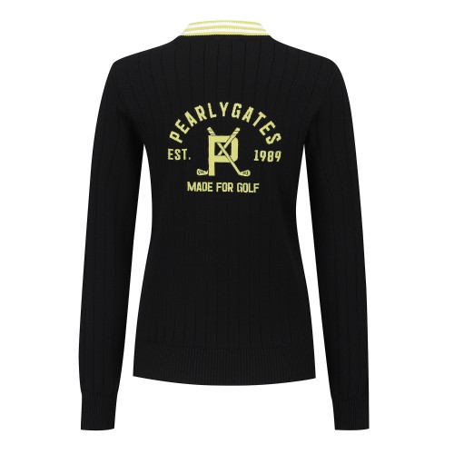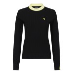 여성 백 로고 자카드 리브 긴팔니트