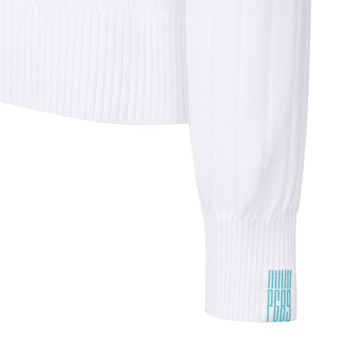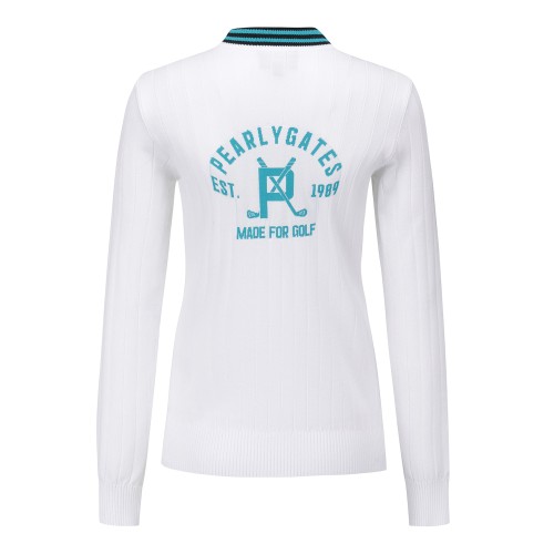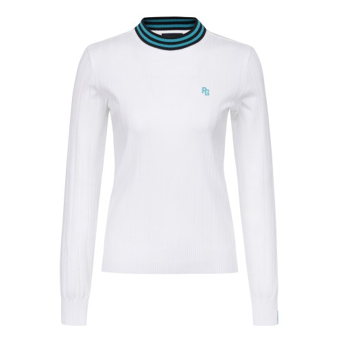 여성 백 로고 자카드 리브 긴팔니트