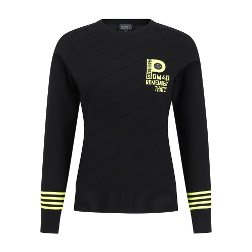 여성 스마일 패치 조직 믹스 긴팔 니트