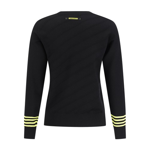 여성 백 로고 자카드 리브 긴팔니트