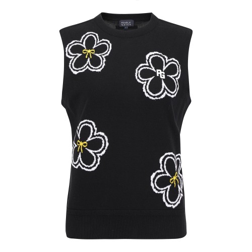 여성 리본 플라워 자카드 니트 베스트
