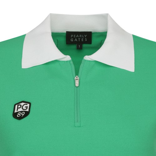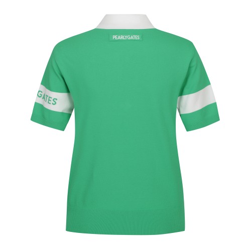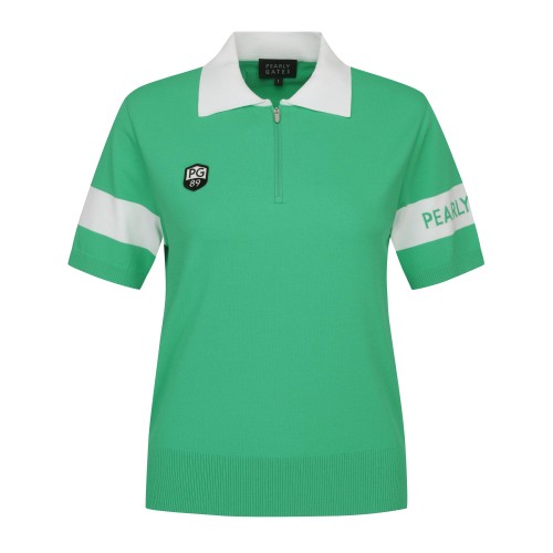 여성 하프 집업 컬러 라인 반팔 니트