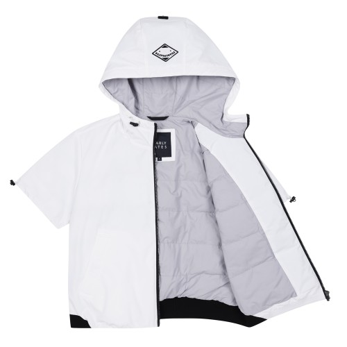 :: DETAIL :: 0,1 SIZE 여성용 반팔 후드 스타일 패딩입니다. 5 SIZE 남성용 후드가 없는 하이넥 스타일의 유니 반팔 점퍼입니다. 사이즈에 따라 디자인이 상이하오니 참고하시어 구매 부탁드립니다 .