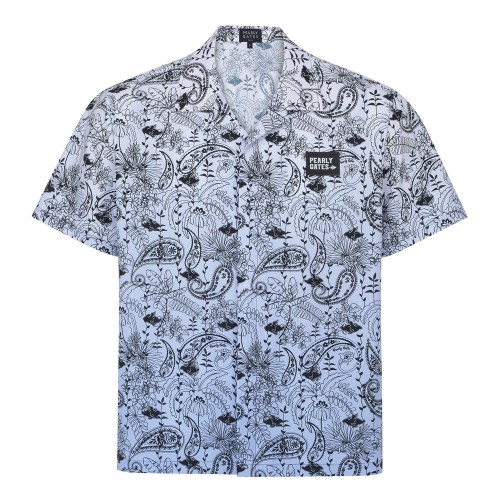 공용 페이즐리 플로럴 오픈카라 반팔 셔츠+0원