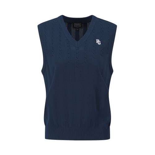 공용 케이블 블록 메쉬 니트 베스트