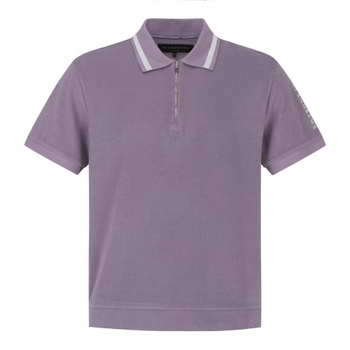 남성 니트 카라 라인 배색 테리 하프 집업 반팔 티셔츠+0원